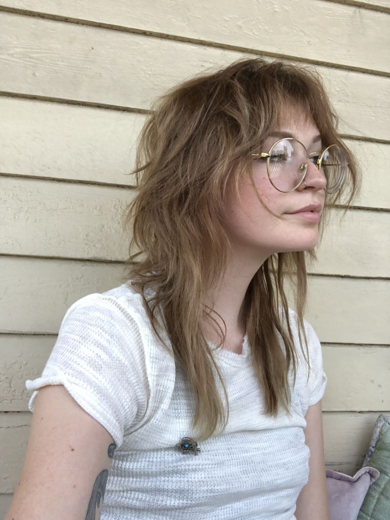 There seems to be a blurring of lines between the shag or shaggy haircut and a bedhead. I guess they are not mutually exclusive. Phil liked how it all worked for this young woman, but he’s a sucker for those big glasses.